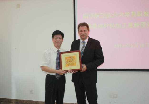 聘任仪式上,陈夏初副校长对Ingomar Kelbassa教授加入南航大家庭表示热烈欢迎,向参会嘉宾及我校师生介绍了Kelbassa教授的学术经历和学术成就,感谢了Kelbassa教授过去在激光加工领域对我校的帮助与指导。他表示Kelbassa教授受聘我校客座教授后,有助于学校师资队伍的丰富,有助于南航国际化办学水平的提升,并且期望两校能以此为契机进一步拓宽科研合作领域,加强国际学术交流,联合培养优秀人才,最终提升我校相关学科的国际术影响力。