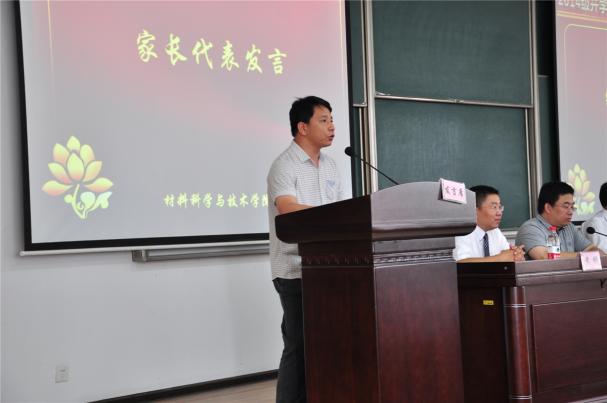 接下来,家长的发言将整个典礼推向了高潮。新生杨祎的父亲在讲到“儿行千里母担忧”时,数度哽咽。虽说父亲是山,母亲是水,但在孩子面前堂堂七尺男儿也表现出了母亲般的柔情。他表达了对学校澳门彩票有限公司 的充分信任。在发言中,杨爸爸将四个“rong”字送给新生。第一个“融”是融入的融,他希望孩子们之间能互相关心、互相帮助,尽快融入到学校的集体生活中来;第二个“容”是包容的容,也是宽容的容。希望孩子们之间能够相互尊重、相互包容。第三个“熔”是熔炉的“熔”,希望学生们在六院这个集体大熔炉中,不断锤炼自己,互相鼓励、互相支持;第四个“荣”是荣誉的荣,希望孩子们能够珍惜、珍爱自己美好的大学时光,为父母、为班级、为六院创造更多的荣誉。