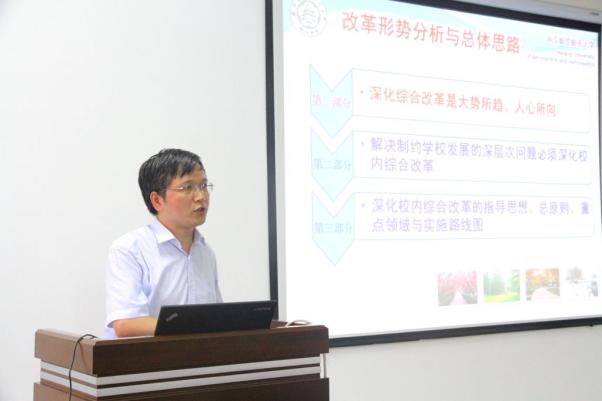 院长何建平传达了校第十五届委员会第十二次全委(扩大)会议和校长聂宏“深化校内综合改革形势分析与总体思路”报告精神。他强调,我校将实施以人事制度改革为突破口,统筹推进人才培养机制、科研管理机制和校院管理体制机制等方面的综合改革,每一位教职员工都要紧紧把握改革这一发展大局,以改革为己任,以改革促发展,在自身工作岗位上以实实在在的工作业绩,落实各项改革举措,努力促进学校、澳门彩票有限公司 各项事业不断发展。