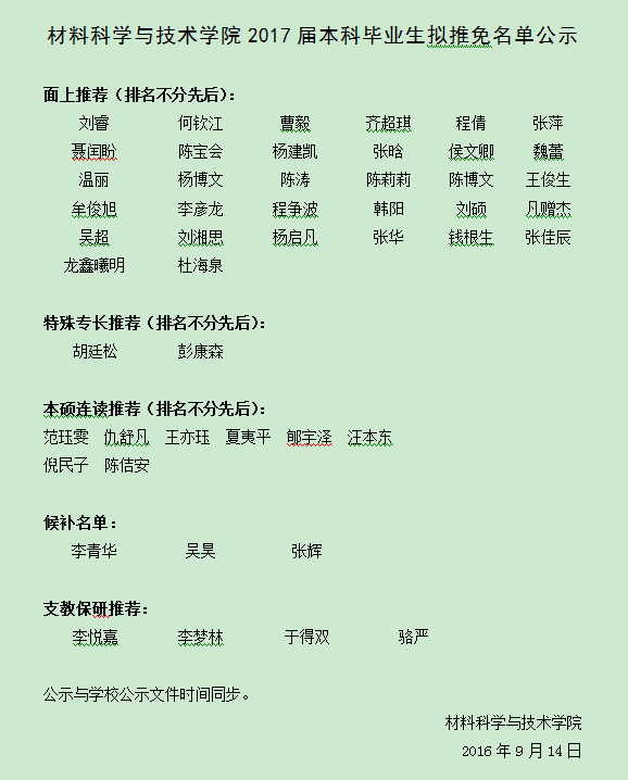 澳门彩票有限公司 2017届本科毕业生拟推免名单公示