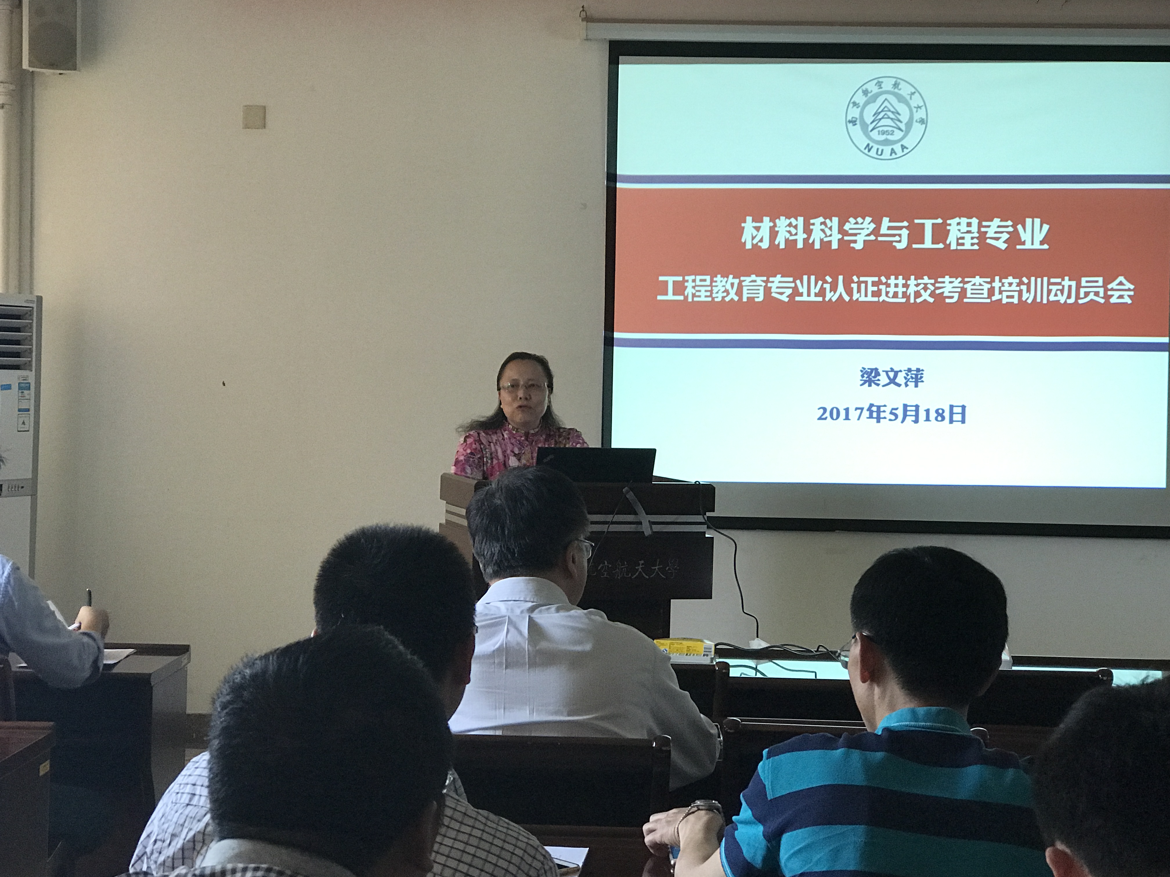 梁处长从“前期工作总结”、“总体要求及流程”、“进校前对专业的要求”、“现场考查中对专业的要求”、“其他有关要求”五个方面进行了培训和动员。材料科学与工程专业在兄弟院校调研基础上,2016年12月20日申请正式受理,进入自评阶段。进入自评阶段后,认证小组先后赴“北京”、“沈阳”参加培训;院内召开了5次培训研讨会:“专业教育认证启动暨培训会”、“认证任务分解及工作布置会”、“毕业要求12条与课程支撑关系讨论”、“教学大纲修订现场会”、“达成度讲评现场会”;同时邀请校内外专家进行3次专家辅导;自评报告撰写组召开10余次研讨会。最终于3月15日完成自评报告初稿,并于4月15日修改完善。