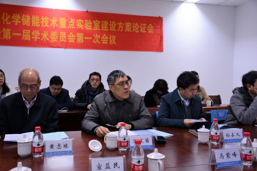 12月19日,江苏省高效电化学储能技术重点实验室建设方案论证会暨第一届学术委员会第一次会议在我校隆重召开。江苏省科学技术厅科技机构与条件处副处长万发苗,南京航空航天大学副校长黄志球教授、科研院常务副院长孙永荣、科研院副处长王云平教授、澳门彩票有限公司 党委书记孙占久等领导出席了会议。重点实验室学术委员会成员宣益民院士、马紫峰教授、温兆银教授、汤卫平教授、孙岳明教授、郑军伟教授、霍峰蔚教授、阮新波教授及重点实验室张校刚教授、彭生杰教授、王涛副教授等主要骨干成员参加了此次会议。
