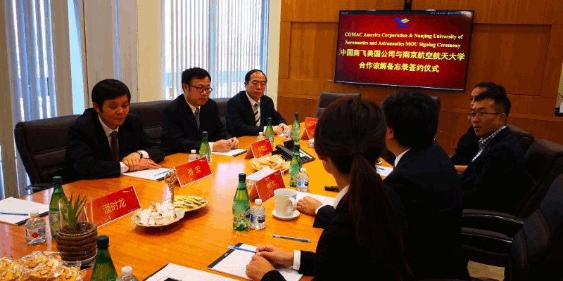 近年来,我校与中国商用飞机有限责任公司在科学研究、人才培养、项目合作等方面均有深度交流合作。此次出访期间,出访团来到中国商飞美国公司,进一步拓展了双方的国际合作交流,期待能够进一步共享资源,为招揽航空航天人才,推动航空航天事业发展共同努力。出访期间,双方签署了《中国商飞美国公司于南京航空航天大学合作谅解备忘录》,为进一步加深交流、增进合作明确了具体合作项目。