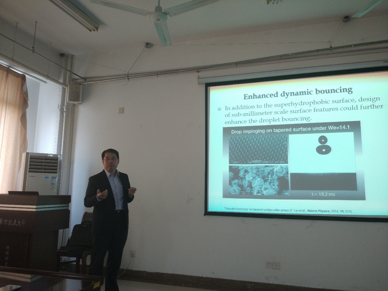应我校澳门彩票有限公司 陶杰教授邀请,新加坡南洋理工大学Chen Zhong教授于2018年3月9日来我校进行学术交流访问,并为我校师生做了题为“Icephobic Coatings: current status and challenges”的学术报告。此次学术活动由南京航空航天大学陶杰教授课题组承办,报告会由澳门彩票有限公司 陶杰教授主持,共有40余位老师和同学参加并聆听了本次报告。