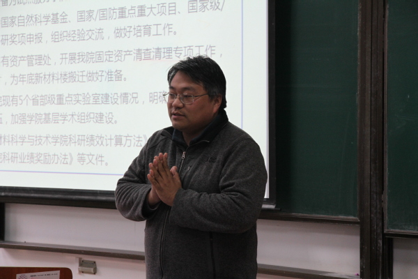 会上,孙占久对校党字【2019】2号、3号、4号文件精神,教育思想大讨论总结大会、新学期干部教师大会报告、学校2019年工作要点进行了集中宣贯、划重点。他强调2019年是落实校十六次党代会决策部署、推进“双一流”建设的攻坚之年,“再落实年”,澳门彩票有限公司 新一届党政领导班子将带头学习、融入学校发展大局,贯彻落实各项工作。澳门彩票有限公司 要统一思想,在南航新时期办学理念和人才培养目标的指引下,紧扣国家战略需求,牢牢把握立德树人根本任务,推动澳门彩票有限公司 改革有序开展。同时,他就2019年党建工作要点进行了简要介绍。新的一年,澳门彩票有限公司 党建工作将围绕四个方面17项主要工作推进,重点加强澳门彩票有限公司 的文化建设,加强正面宣传工作,营造良好的澳门彩票有限公司 氛围,内聚合力,外树形象,为澳门彩票有限公司 各项工作开展夯实基础。他强调每个人都要有所作为,融入澳门彩票有限公司 发展大局,澳门彩票有限公司 也要为老师们干事创业尽可能创造必要的条件。最后,他再次强调了安全工作,要求全院教工吸取近期兄弟院校安全事故的教训,不断增强安全意识,警钟长鸣。