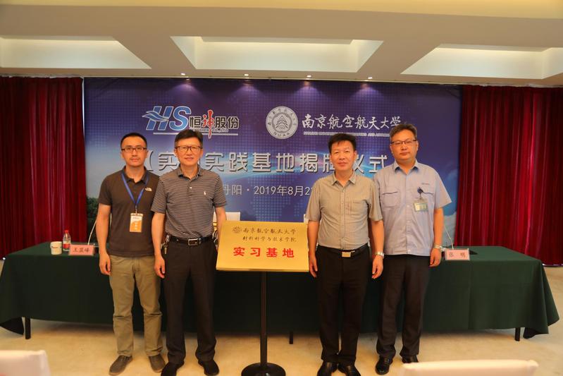 实习实践基地揭牌仪式在江苏恒神股份有限公司举行。丹阳市经济开发区管委会副主任荆东根、南京航空航天大学教务处副处长王敬东、恒神股份总裁张明出席揭牌仪式并先后发言。