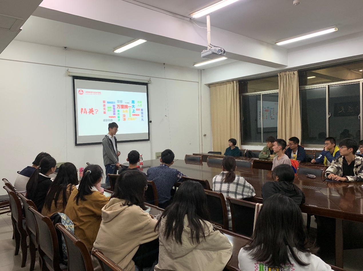 为进一步发挥本科生朋辈导师的“传、帮、带”作用,培养低年级本科生独立思考,科学规划的能力,11月16日晚,澳门彩票有限公司 第十四期“学长学姐说”交流会在材料楼259会议室成功举行。交流会上,澳门彩票有限公司 0616100班班长,2016-2017学年、2018-2019学年国家奖学金获得者宗旸与低年级本科生分享他的国家奖学金之路。