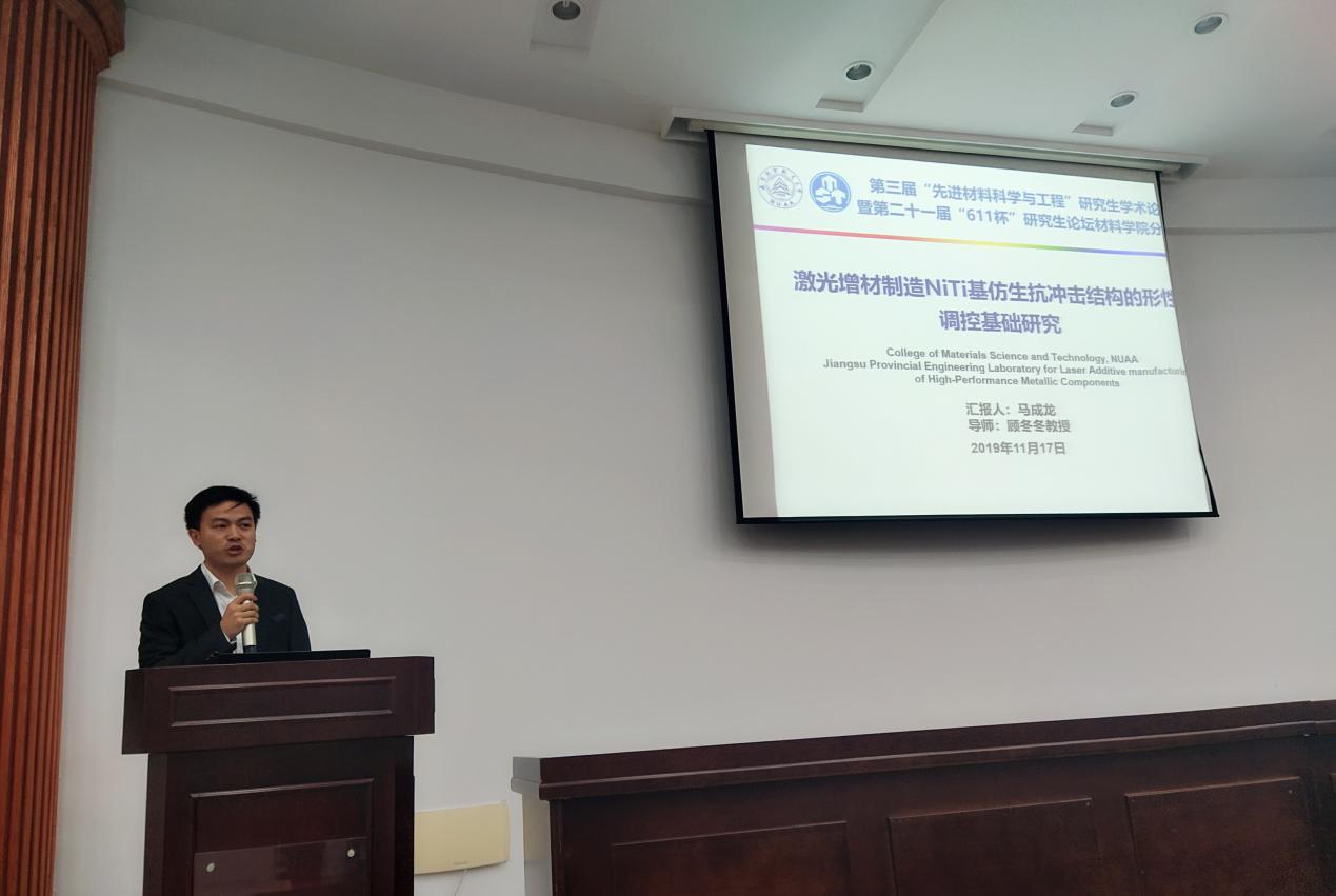2019年11月17日上午,第三届“先进材料科学与工程”研究生学术论坛暨“611杯”南京航空航天大学第二十一届研究生学术论坛澳门彩票有限公司 分论坛成功举办,澳门彩票有限公司 院长助理、材料加工工程系主任占小红,院团委书记李科艳,核科学与技术系教师马骏,研究生辅导员钟佳、龙鑫曦明,以及澳门彩票有限公司 各年级研究生们参加了本次论坛。该论坛以“先进材料科学与工程”为主题,旨在开拓研究生学术视野,搭建高水平学术交流平台,培养国际化的顶尖材料学科人才。