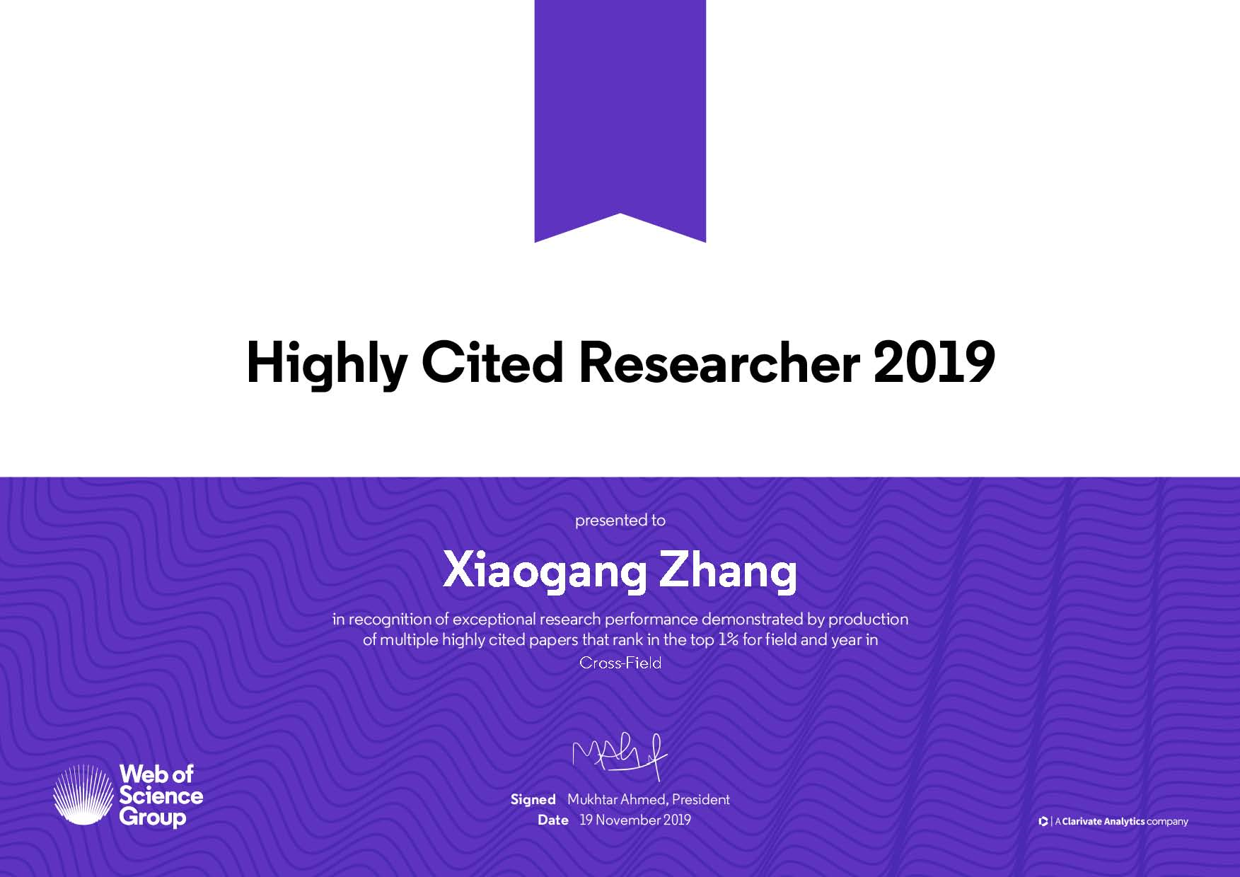 近日,科睿唯安(Clarivate Analytics)公布了2019年度全球“高被引科学家”榜单(Highly Cited Researchers 2019),澳门彩票有限公司 院长张校刚教授入选。据悉张校刚教授已连续四年入选该榜单。