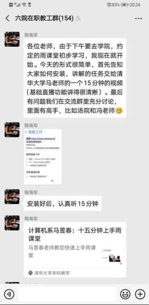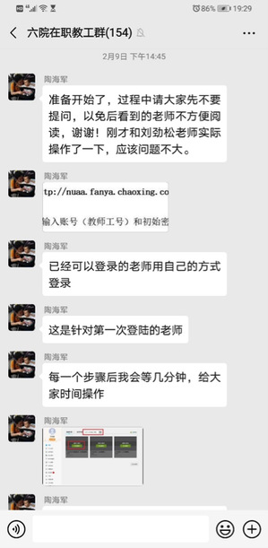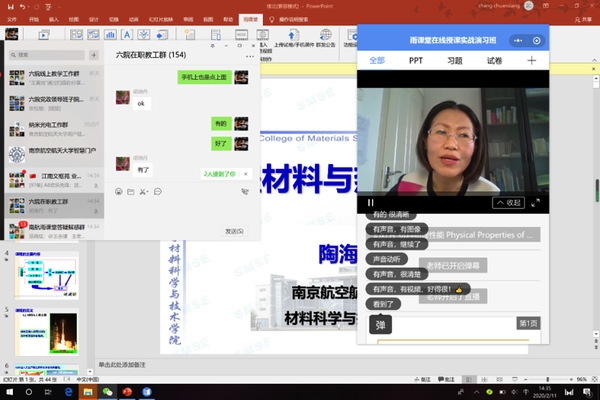 2月9日、10日,澳门彩票有限公司 教澳门彩票有限公司 长陶海军连续两天在教职工微信群里进行了图文培训,分别教授大家如何在南航精品课程平台上建立课程,如何安装注册使用雨课堂。截止目前,澳门彩票有限公司 已在校精品课程平台完成新建课程60门,63位老师绑定雨课堂。