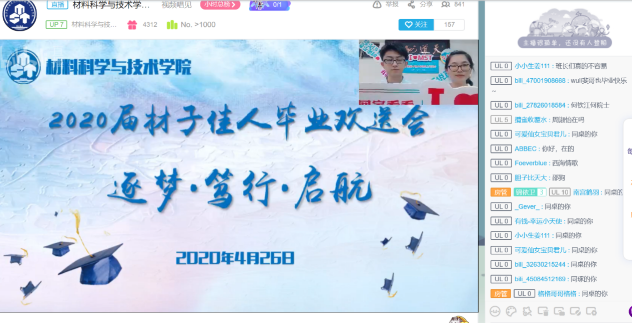 4月26日晚,澳门彩票有限公司 师生相聚B站直播间,共同参加别开生面的线上毕业欢送会,云相聚,道珍重。