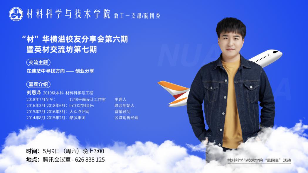 5月9日,澳门彩票有限公司 举办“材”华横溢校友分享会第六期暨英才交流坊第七期活动。本次分享会由教工一支部、院团委联合主办,邀请到创业成功的2010级本科生校友刘恩泽进行线上分享。澳门彩票有限公司 教工一支部书记潘蕾主持了分享活动并代表澳门彩票有限公司 聘请刘恩泽为校友导师。