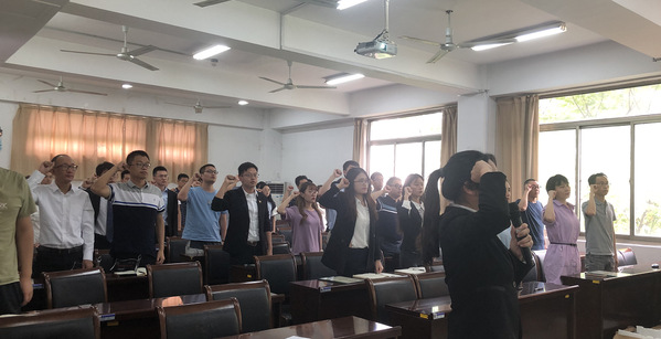 每个共产党员在入党的时候,都曾在党旗下庄严宣誓。这是一份政治誓言、一份忠诚承诺、一份责任担当,是全体共产党员共同的行为准则,必须时刻牢记和遵守。大会最后由陶宇带领大家重温入党誓词,评优表彰大会至此圆满落幕。