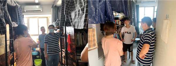 走访过程中,张校刚对舟车劳顿的同学们表示关心,提醒同学们要注意休息,南京天气较热,近日要防止中暑。除此之外,他还关切的询问同学们在返校后是否遇到困难,如果有需要帮助的地方要及时和辅导员反馈,澳门彩票有限公司 定会尽力帮助。看着有的同学还在收拾行李,许赞提醒同学们平时要注意生活环境的消毒和通风,保持宿舍卫生,勤洗手并加强锻炼,保证身心的健康。对于近期即将进行的期末考试,陶海军提醒同学们返校后要及时适应新环境,调整好学习状态,争取在期末考中取得好成绩,检验网上学习的成果。