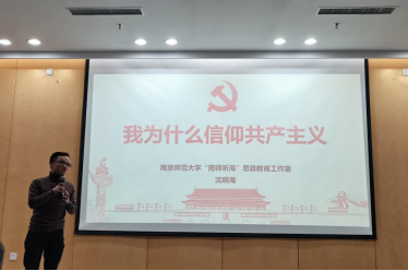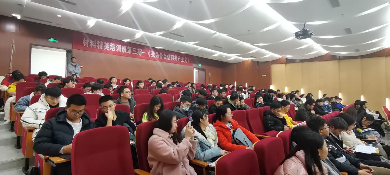 12月22日,2020-2021学年材料精英培训班第三期于图书馆报告厅正式举行,由来自南京师范大学“南师听海”思政教育工作室的沈晓海老师为澳门彩票有限公司 本科生、研究生团支书及入党积极分子讲述 “我为什么信仰共产主义”。本期材精班由院团委书记徐萍主持。