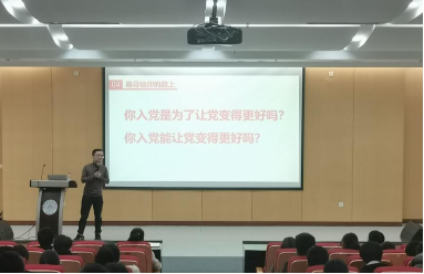 最后,便是“追寻信仰的路上”。他提出了“你为什么加入中国共产党”、“你入党是为了让党变得更好吗”、“你入党能让党变得更好吗”这三个问题,使在座的同学们陷入深思。在他的展示中,提到了习总书记这样一句话:“党的自我革命任重而道远……严重的问题不是存在问题,而是不愿不敢直面问题,不想不去解决问题。”所以,在追寻信仰的路上,我们应在自我完善上下功夫,在自我革新上求突破,在自我提高上下功夫。此生无悔入华夏,来时还愿种花家。希望一代又一代共产党员能带着信仰建设出一个更加美好的中国。