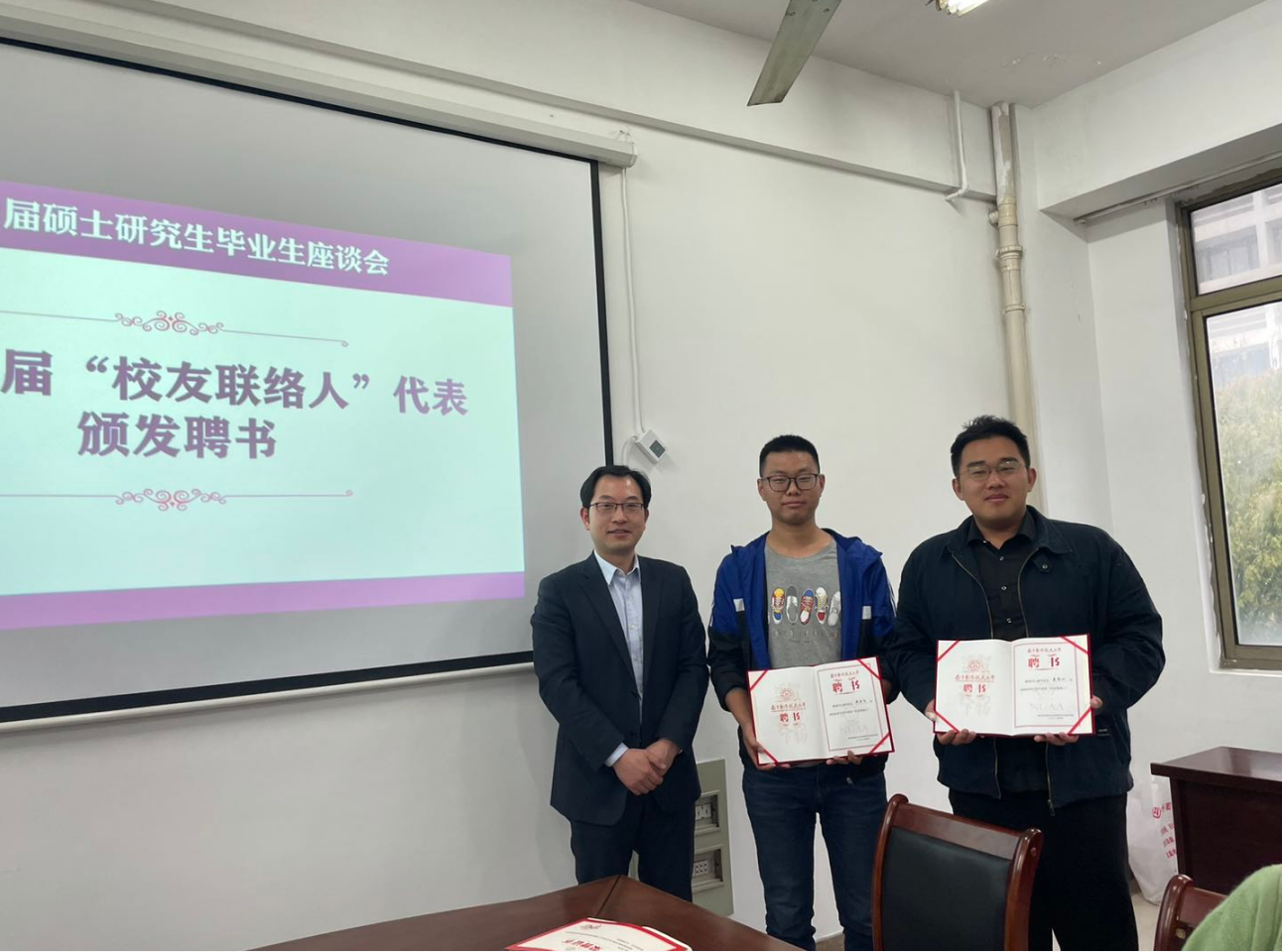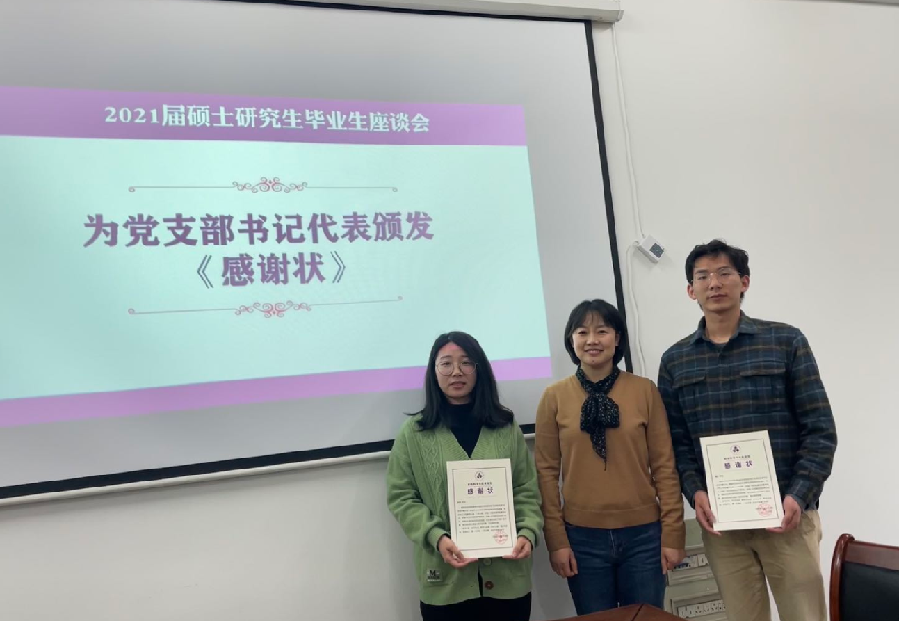 随后,占小红为优秀毕业生代表颁发了荣誉证书,祝愿他们在新的工作岗位继续发扬南航精神,保持初心,砥砺前行;许赞为党支部书记代表颁发了《感谢状》,感谢他们为支部、为澳门彩票有限公司 做出的贡献;石勇为2021届“校友联络人”代表颁发聘书,希望他们不忘母校,常回家看看。