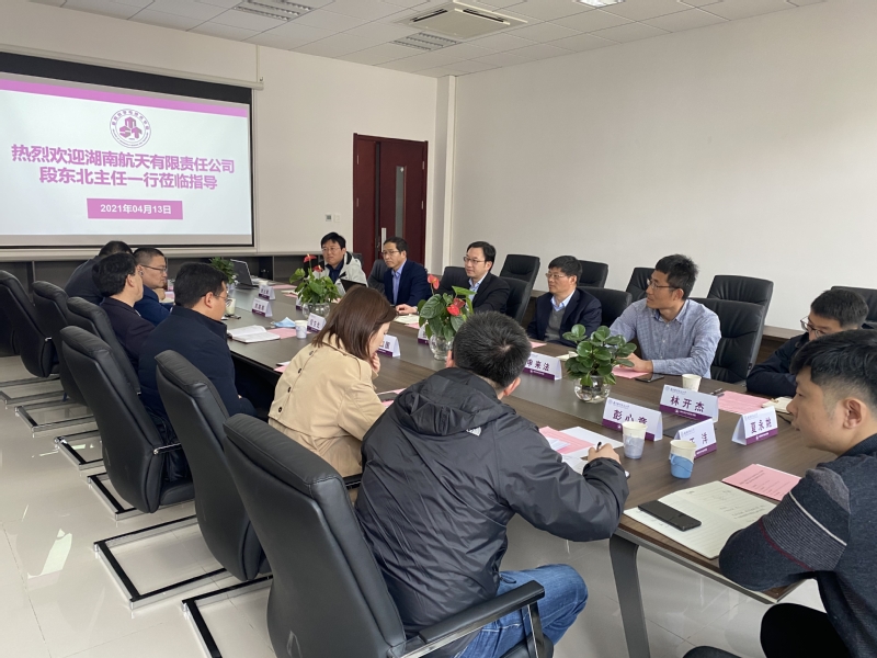 2021年4月13日,湖南航天有限责任公司科技委主任、总工艺师、总质量师,长沙新材料产业研究院有限公司党委书记、董事长段东北一行来院开展调研交流。会议由澳门彩票有限公司 党委书记石勇主持,院长张校刚、院长助理占小红及部分教师代表参会。