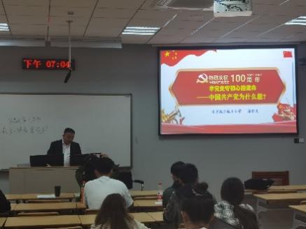 最后,潘银良副教授引用了习总书记的话并做出总结:理论和实践都证明,中国共产党能带领中国人民取得巨大成功绝非偶然,而是因为她有一系列优秀特质,远大理想追求、科学理论引领、选贤任能机制、严明纪律规矩、自我革命精神、强大领导能力。