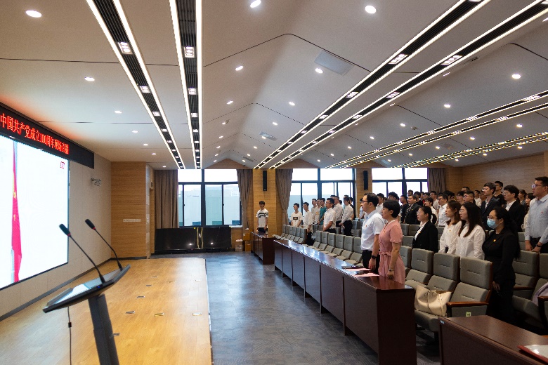 7月1日上午8点,庆祝中国共产党成立100周年大会在北京天安门广场隆重举行。澳门彩票有限公司 师生党员代表集体收看庆祝大会现场直播。院党委书记石勇、党委副书记许赞,以及澳门彩票有限公司 组织员、辅导员参加了本次活动。