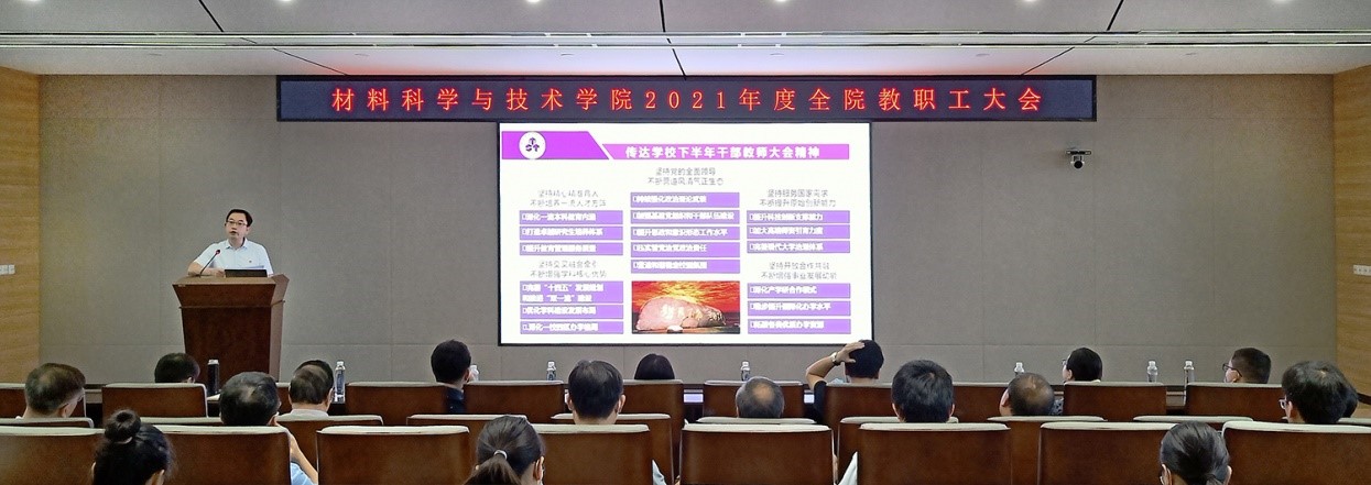 9月29日下午,在喜迎72周年国庆前夕,澳门彩票有限公司 召开新学期全体教职工大会,深入学习习近平总书记“七一”重要讲话精神和中央人才工作会议精神,贯彻落实学校2021年度下半年干部教师大会精神,解读学科评估指标与澳门彩票有限公司 绩效考核指标体系,进一步明确下一阶段澳门彩票有限公司 重点推进工作。会议由澳门彩票有限公司 党委书记石勇主持,澳门彩票有限公司 领导班子全体成员、全体教职工参加了本次会议。