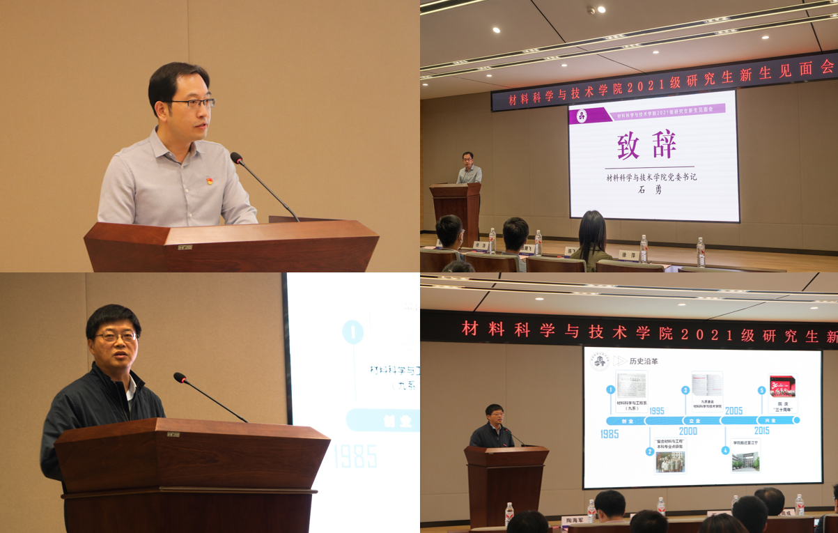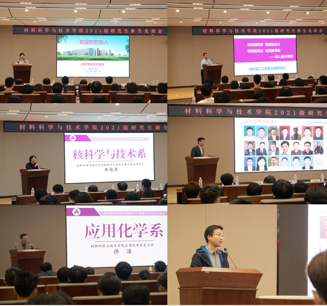 2021年10月12日至10月13日,澳门彩票有限公司 2021级研究生新生见面会于院楼D10的B501教室召开。澳门彩票有限公司 党委书记石勇、院长张校刚、副院长陶海军、副院长刘周成、院长助理冯晓梅、材料加工工程系系主任郭训忠、应用化学系系主任佟浩、材料科学系系主任杨亮、材料科学系系副主任张腾飞、核科学与技术系系副主任陈飞达、核科学与技术系教工党支部书记丰俊东、澳门彩票有限公司 团委书记徐萍及各年级研究生辅导员出席了会议。党委副书记许赞主持大会。2021级全体研究生新生分两个场次参加了会议。
