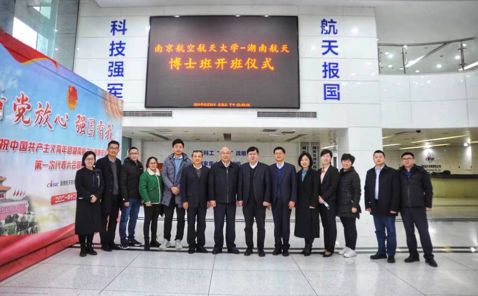 12月24日下午,南京航空航天大学-湖南航天2021级博士班开班仪式在湖南航天举行。南京航空航天大学(以下简称南航)党委常委、副校长黄志球,澳门彩票有限公司 院长张校刚,湖南航天党委副书记、总经理张镝,相关部门负责人,以及澳门彩票有限公司 挂职湖南航天新材料研究院副院长申来法,博士班学员代表参加了本次仪式。仪式由湖南航天党委副书记、副总经理杨运斌主持。