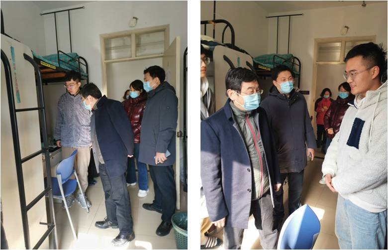 寒潮已去,天地万物同春,伴随着明媚的阳光,材料人迎来了新学期的第一天,全院师生如期开展线上教学。副校长施大宁在澳门彩票有限公司 党委副书记许赞、副院长陶海军和大一辅导员刘召阳的陪同下,走进学生宿舍,检查澳门彩票有限公司 学生的开课情况。通过与学生交流,施校长了解了学生的基本情况和线上学习的准备情况,包括线上学习效果、线上平台的使用以及课后复习等,鼓励学生互相帮助,对于不同时间开课的同学互相体谅,有困难及时向学校反映。
