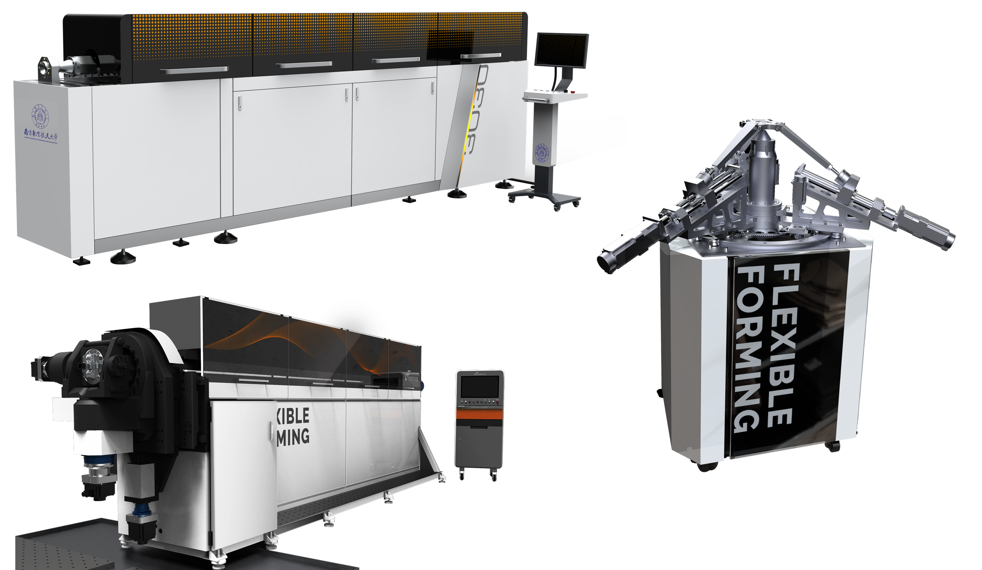 南京航空航天大学柔性成形技术及装备团队长期立足于国家在航空航天、核能工程、汽车工程等方面的重大需求,在关键制造技术及装备研发方面取得了丰硕的科研成果。团队在国家相关重点、重大项目支持下,先后突破了长寿命陶瓷内衬模具制造关键技术、多轴联动精准控制与工艺解析关键技术及在线自适应纠偏关键技术。自主研发了国内首台六自由度管/型材自由弯扭复合成形装备、七轴联动并联机构自由弯曲成形装备、移动式/轻量化战时军机关键构件快速柔性成形装备,在总体构型、自由度以及综合功能方面不断优化和提升,为航空航天工程应用提供了重要支撑。
