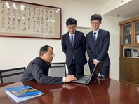 终审决赛期间,澳门彩票有限公司 学子用细致的讲解向前来观看的校党委副书记刘宇雷和副校长施大宁展示了项目的科学性,先进性,应用性,吸引了众多专家领导的驻足观看,专家领导们充分肯定了团队师生做出的努力。