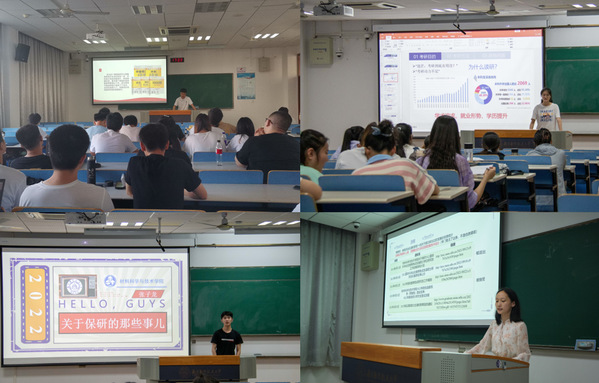 在每一期分享会上,同学们也与学长学姐们进行了深入的提问交流。近到导师的选择、研究方向的确定,远及研究生学习方法了解、压力调节等。学长学姐们知无不言、言无不尽,给学弟学妹们做了详细而全面的解答。