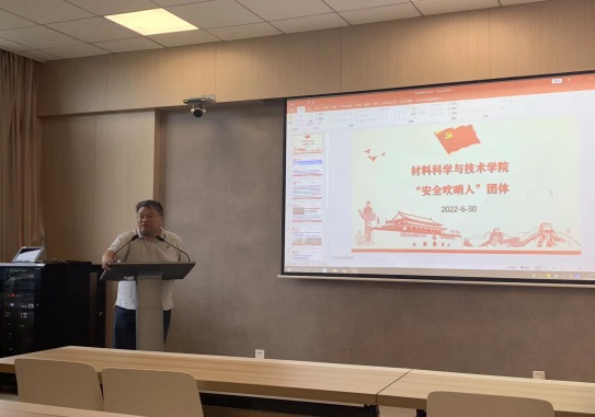 2022年6月30日,材料科学系教工党支部联合研究生9支部开展了“牢记安全使命,保障实验安全!”的主题党日活动,澳门彩票有限公司 副院长汤晓斌、材料科学系非党员教工受邀参加,活动由系教工党支部书记刘劲松主持。