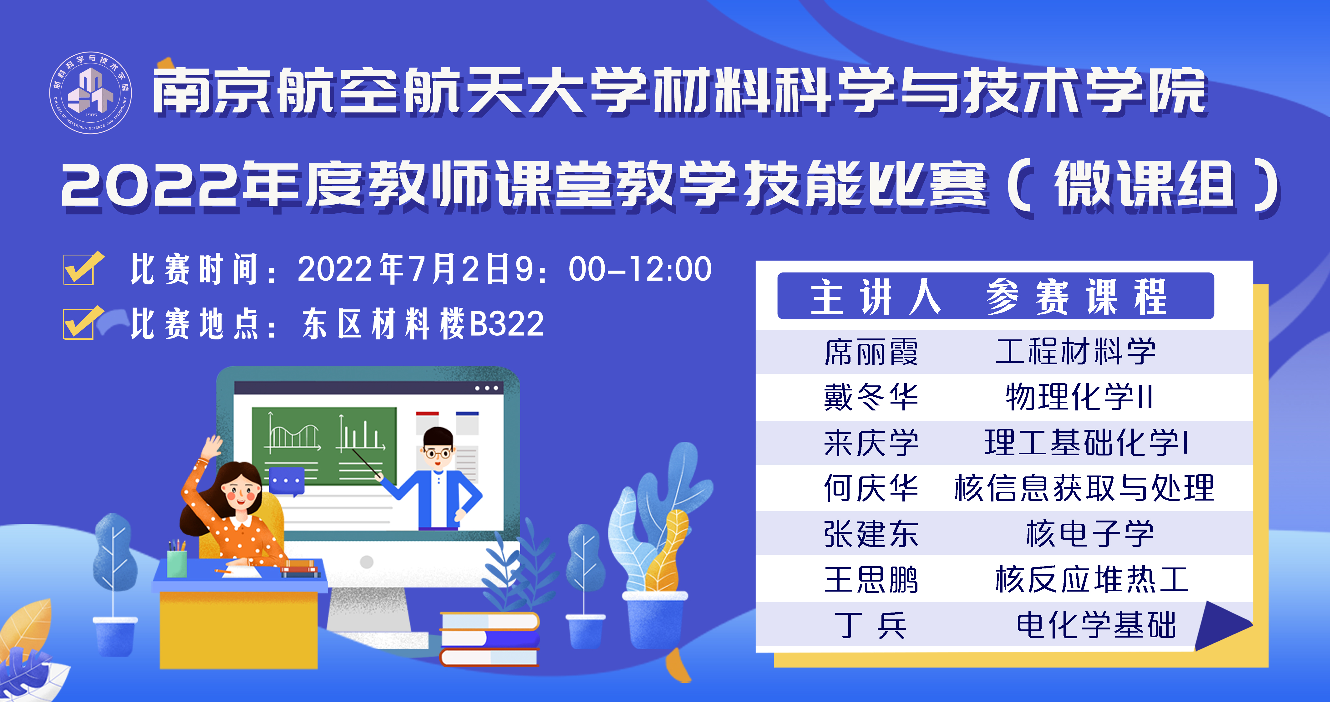 经过激烈角逐,材料加工工程系戴冬华老师、材料科学系丁兵老师、核科学与技术系张建东老师3位教师获得一等奖,将代表澳门彩票有限公司 备战南航2022年微课教学比赛。