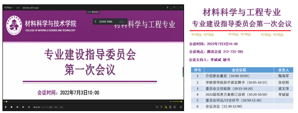 2022年7月3日,材料科学与工程专业新一届专业建设指导委员会召开首次会议,主任委员梁文萍、副主任委员程继贵、委员沈晓冬、储洪强、陈阳、史和生、封小松、朱申敏、陶杰、顾冬冬、陶海军及秘书李斌斌全部参加了本次线上会议。会议由李斌斌主持,澳门彩票有限公司 院长张校刚受邀出席。