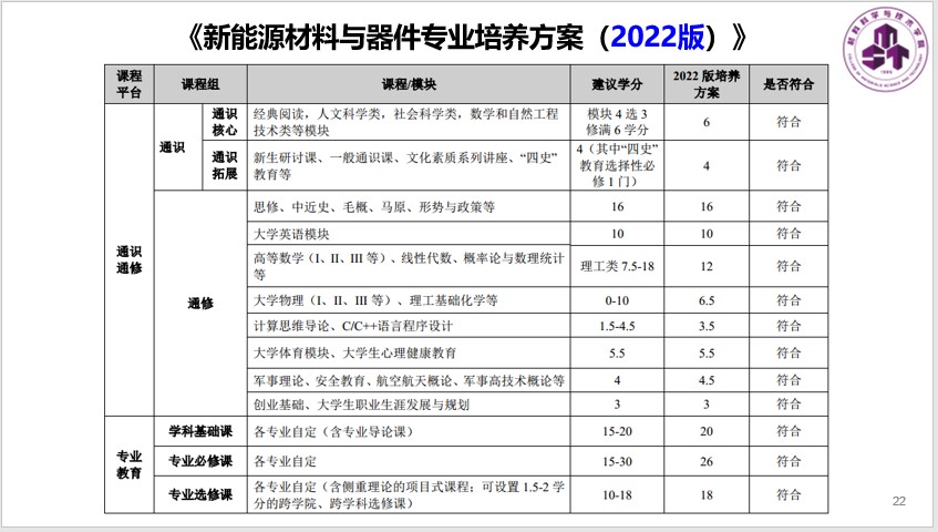 会议重点对2022级新能源材料与器件专业培养方案的修订进行了审议与讨论,秘书丁兵作为材料科学系教学主任,对照《南京航空航天大学本科专业人才培养方案(2022版)制订指导意见》,分析了现有培养方案中课程平台、课程模块设置等方面的不足,重点介绍了2022版培养方案的修订方案。