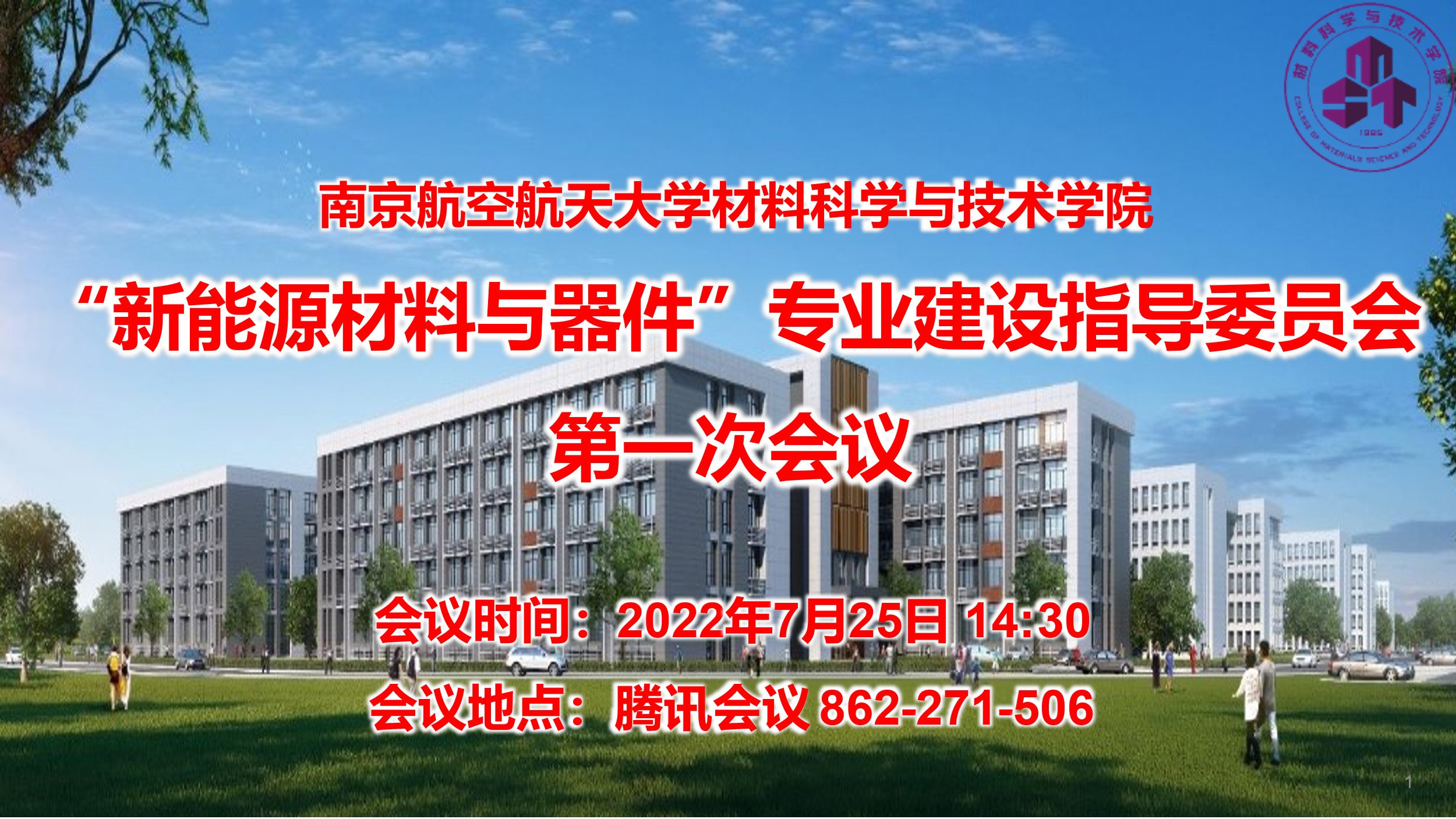 2022年7月25日,澳门彩票有限公司 首届新能源材料与器件专业建设指导委员会召开第一次会议,主任委员梁文萍,副主任委员沈鸿烈,委员倪志春、赵世勇、张校刚、郑勇、陶海军,秘书丁兵、刘劲松参与本次线上会议,会议由丁兵主持。
