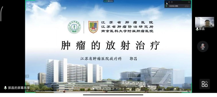 8月27日上午,由耿长冉老师带队,江苏省肿瘤医院放射治疗科老师“线上“带领同学们参观学习了江苏省放射治疗中心。在此过程中,同学们从放射治疗的发展史、治疗原理、治疗设备、治疗流程等多个角度进行了深入学习。通过线上视频参观的形式,同学们“实地”观摩了治疗设备以及治疗流程。报告结束后,授课老师与同学们开展了激烈的交流探讨,对放射治疗的发展以及未来的就业提供了指导。
