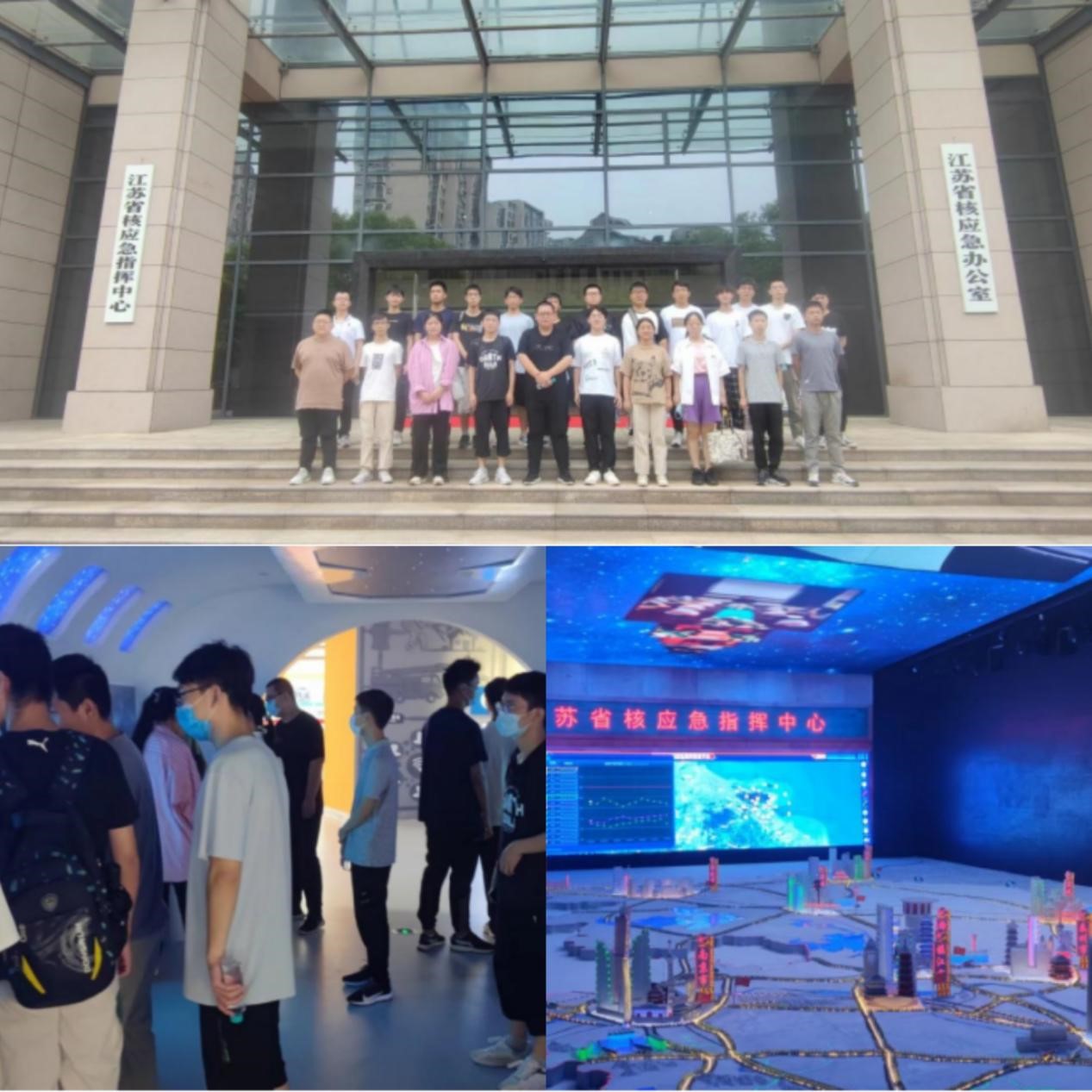 在一队师生热火朝天实习的同时,二队也开始了他们独特的实习之旅,8月23日上午,耿长冉老师带领实习队伍前往江苏省人民防空办公室江苏省核应急指挥中心实习。展区紧扣防空防灾的鲜明主题,采用声、光、电、影视互动等现代化高科技展示手段,突出知识性、趣味性、体验性、互动性,融入国防教育和公共安全教育。同学们通过学习了解了人民防空的重要作用,学习了防空防灾、核应急、公共安全应急避险知识,受益匪浅。