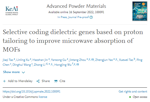 论文:Selective Coding Dielectric Genes Based on Proton Tailoring to Improve Microwave Absorption of MOFs
