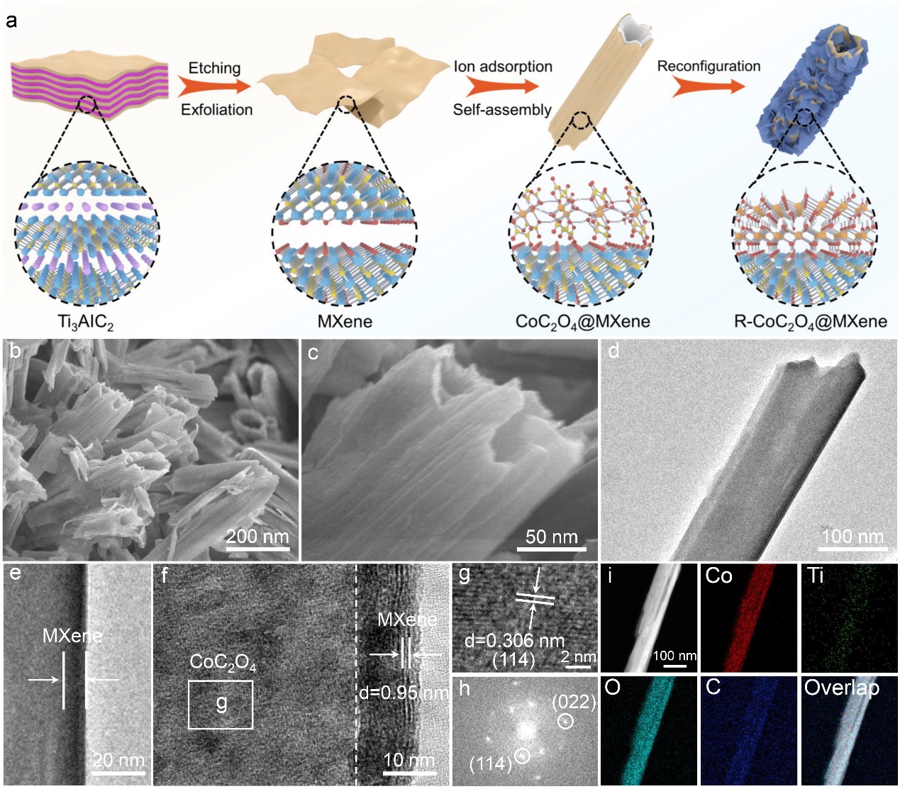 图1. 制备的CoC2O4@MXene预催化剂的结构表征
