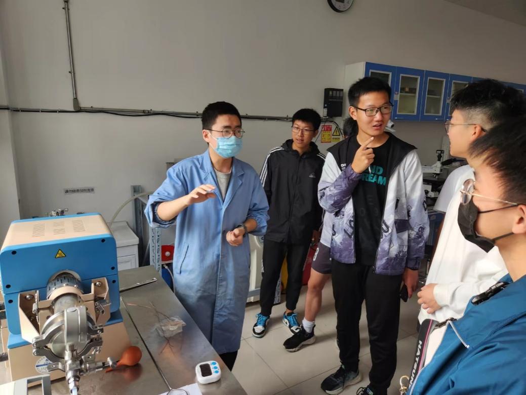 2021级博士环宇淳为同学们讲解了柔性功能材料实验室内相关仪器设备及工作原理,同学们一边观看,一边热烈讨论柔性功能材料原理。