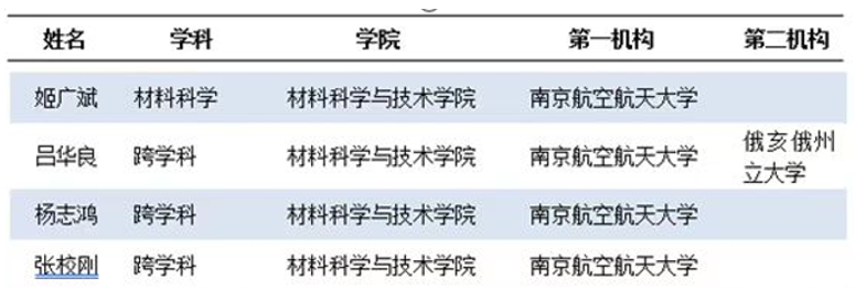11月15日,科睿唯安发布了2022年度全球高被引学者名单,来自全球69个国家和地区的6938名学者入选,中国内地共有1169人次入选。南京航空航天大学共6人入选,其中澳门彩票有限公司 4人。