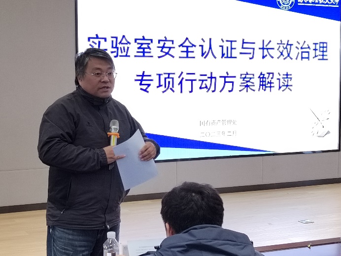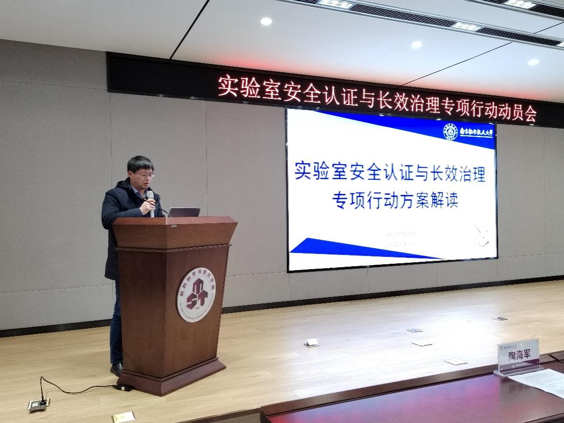 新学期、新起点、新目标、新征程,为切实增强澳门彩票有限公司 实验室安全管理能力和水平,保障澳门彩票有限公司 安全稳定和师生生命安全,上好实验室安全第一课,2月13日下午,在将军路校区东区材料楼B501会议室,澳门彩票有限公司 举办实验室安全认证与长效治理专项行动动员会,并邀请国资处阎志军副处长一行来澳门彩票有限公司 对专项行动方案进行解读,澳门彩票有限公司 党委书记石勇,院长张校刚,副院长汤晓斌、陶海军,各系分管安全的副主任,全体实验室安全责任人参加了本次动员会,会议由汤晓斌主持。