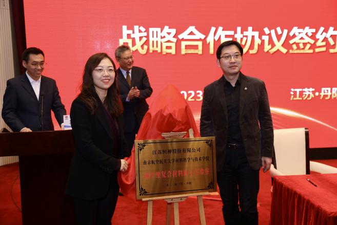 会上,刘瑾董事长与石勇书记共同为共建碳纤维复合材料联合实验室揭牌,张明总经理与刘周成副院长共同签署战略合作协议。