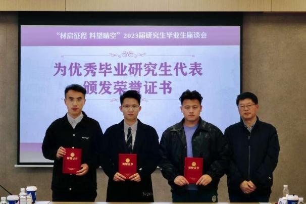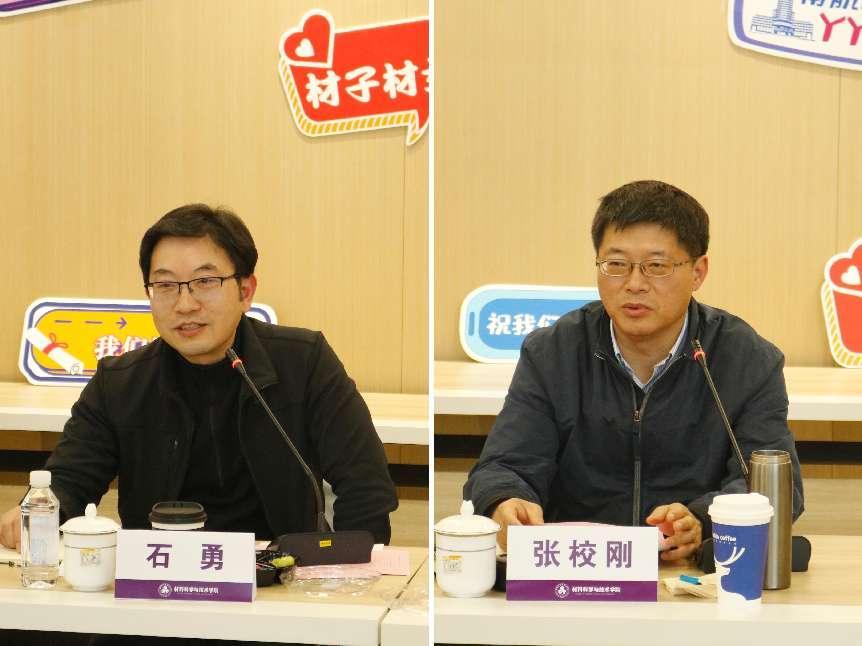4月4日下午,澳门彩票有限公司 召开“材启征程 料望晴空”2023届毕业研究生代表座谈会。院党委书记石勇、院长张校刚、院党委副书记庄晓舒、副院长汤晓斌、各系相关负责同志、研究生辅导员以及硕博毕业生代表参加座谈。座谈会由汤晓斌主持。