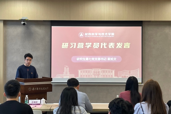 学员代表、研究生第七党支部书记梁旭文分享了他对学党员骨干身份的认识,表达了对研习营的感谢和期待。