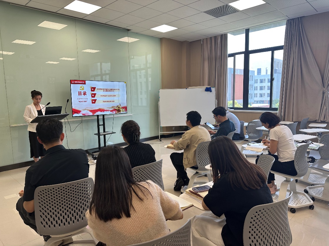 支部发展对象王嘉炜以《以学铸魂,奔赴主题教育之约》为题分享了学习贯彻习近平新时代中国特色社会主义思想主题教育心得。他表示要结合本职工作,将主题教育融入日常、抓在经常,在接下来的工作生活中,切实增强本领,不断提高自身素质,持之以恒,做一名“想干事,能干事,干成事的材料人。