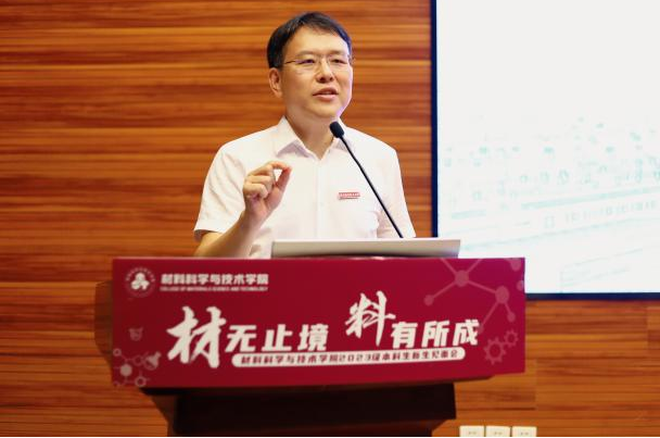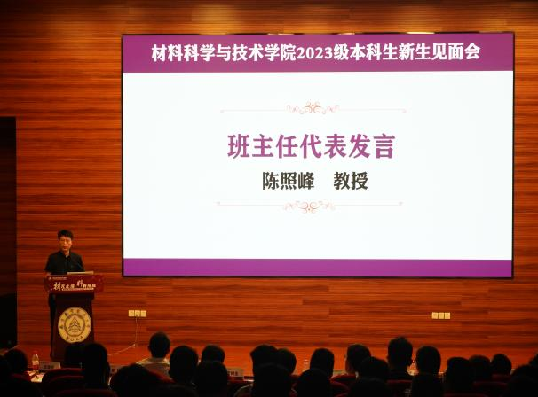 班主任代表陈照峰寄语新同学们在校期间要“加入一个团队、掌握一种方法、学习一种软件、精通一种材料”,在不断学习中强化本领担当,在精益求精中突破自我。
