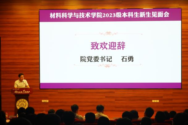 澳门彩票有限公司 党委书记石勇首先代表澳门彩票有限公司 对2023级本科新同学的到来表示热烈欢迎,并对新生提出三点希望。一是希望同学们传承“航空报国红”,继承“志在长空蓝”的人生背景色,坚持“科技报国、材料强国”的理想与担当,与祖国同行、与时代共进;二是希望同学们探寻“神秘材料紫”,培养“脚踏实地黄”的成长主题色,静心学习、祛除浮躁,在材料领域不断拓宽拓深专业知识,为解决材料领域“卡脖子”难题,贡献青春力量。三是希望同学们绽放“活力四射橙”,增添“青春洋溢绿”的未来亮点色,展现新时代青年风采。他寄语同学们在自己人生特有底色上不断求新,绘制七彩青春画卷,求得人生之大美。