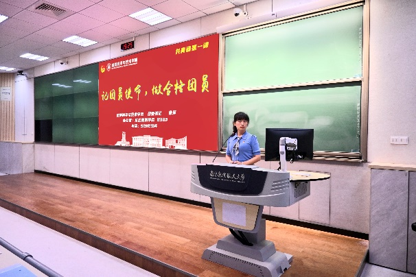 近日,澳门彩票有限公司 “大学共青团第一课”在将军路校区4102教室举办,院团委书记徐萍主讲,院团学组织成员及2023级全体本科生参与活动。